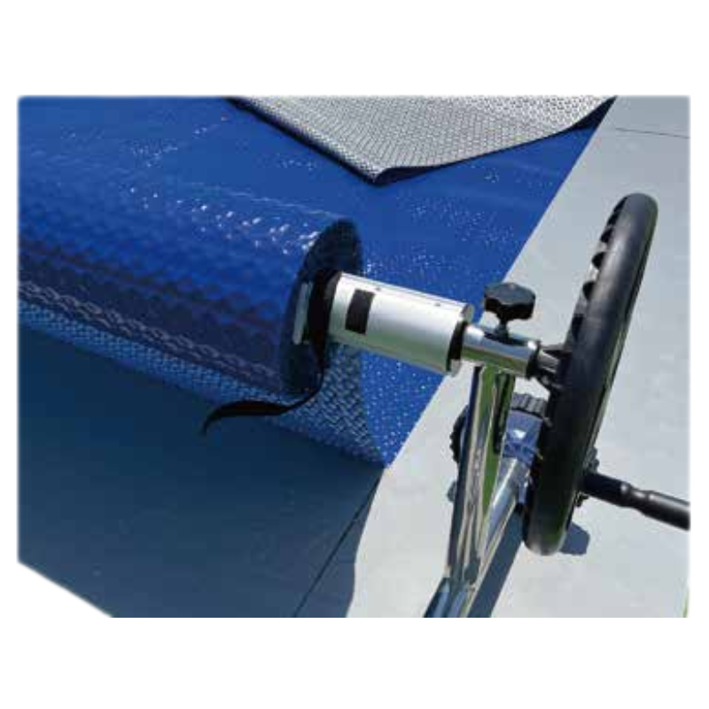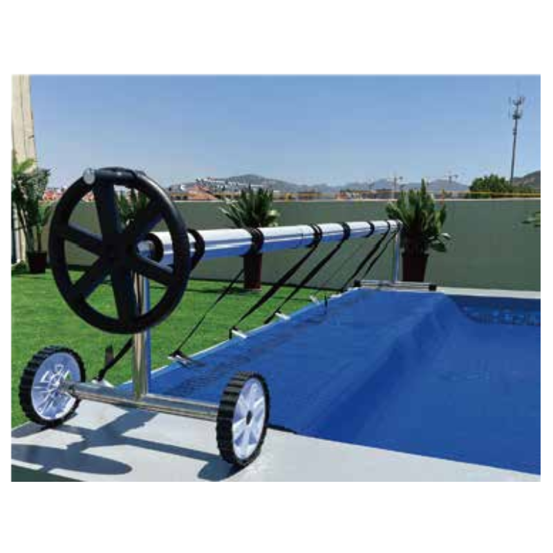 El uso de un carro porta manta facilita en gran medida el enrollado y desenrollado del cobertor térmico, haciendo que esta tarea se demore muy pocos minutos y además sea muy liviana y fácil de llevar a cabo. En forma adicional ,ayuda a extender la ida útil del cobertor.