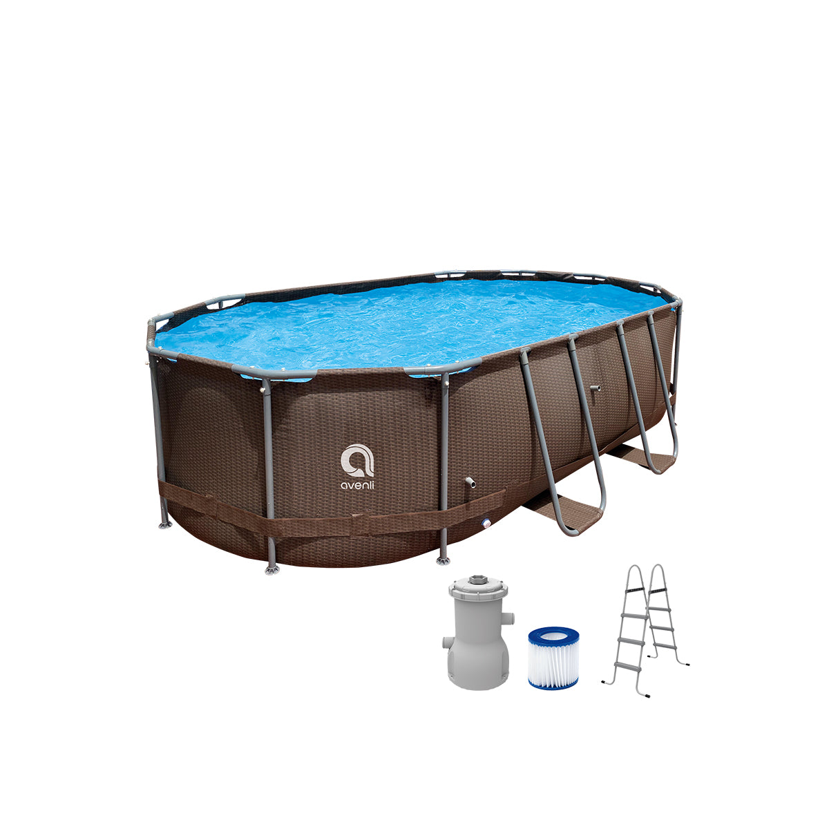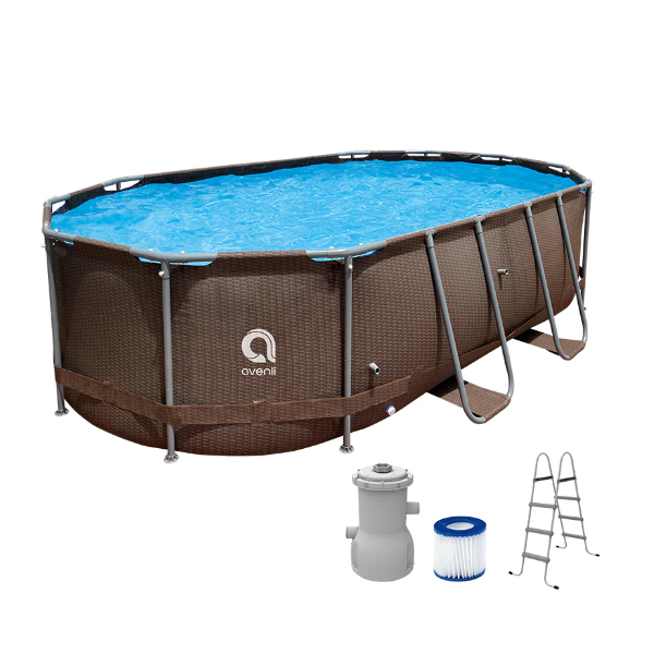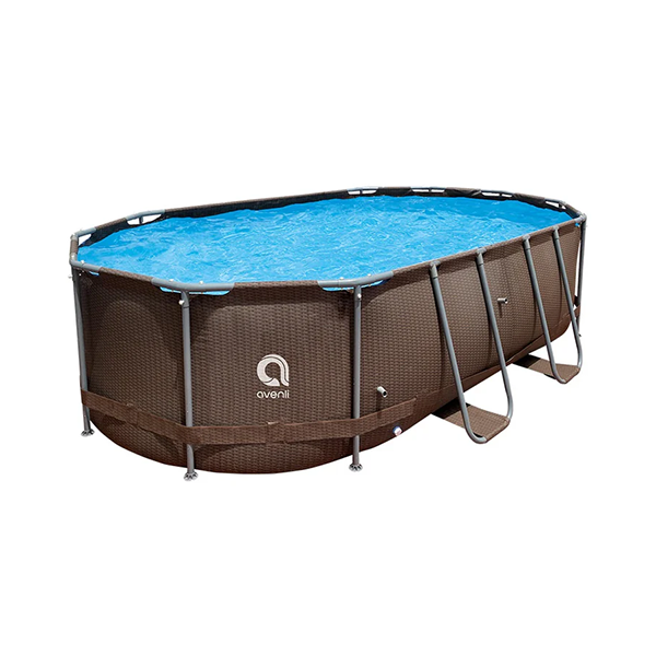 Disfruta el verano con esta piscina estructural Avenli ovalada de 11.000 litros, diseñada con elegante acabado tipo ratán. Su estructura resistente y tamaño familiar la convierten en la opción perfecta para refrescarte en casa.