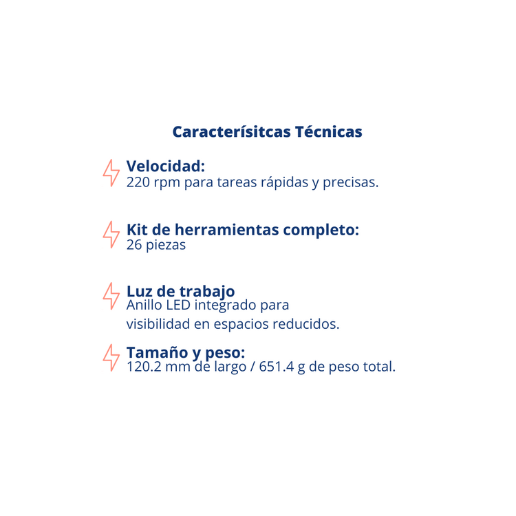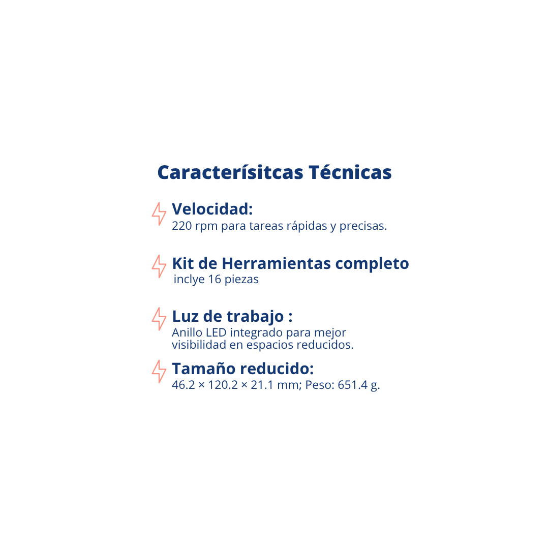 - Destornillador de 3,6 V con ajuste de torsión de 3 niveles, LED anular y batería de larga duración; llave ajustable con mordaza de 25 mm.