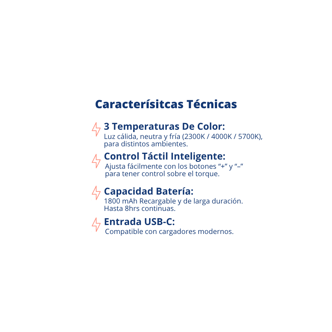 - Intensidad Regulable: Permite ajustar el brillo según las necesidades del usuario, proporcionando flexibilidad y confort visual en diferentes situaciones.