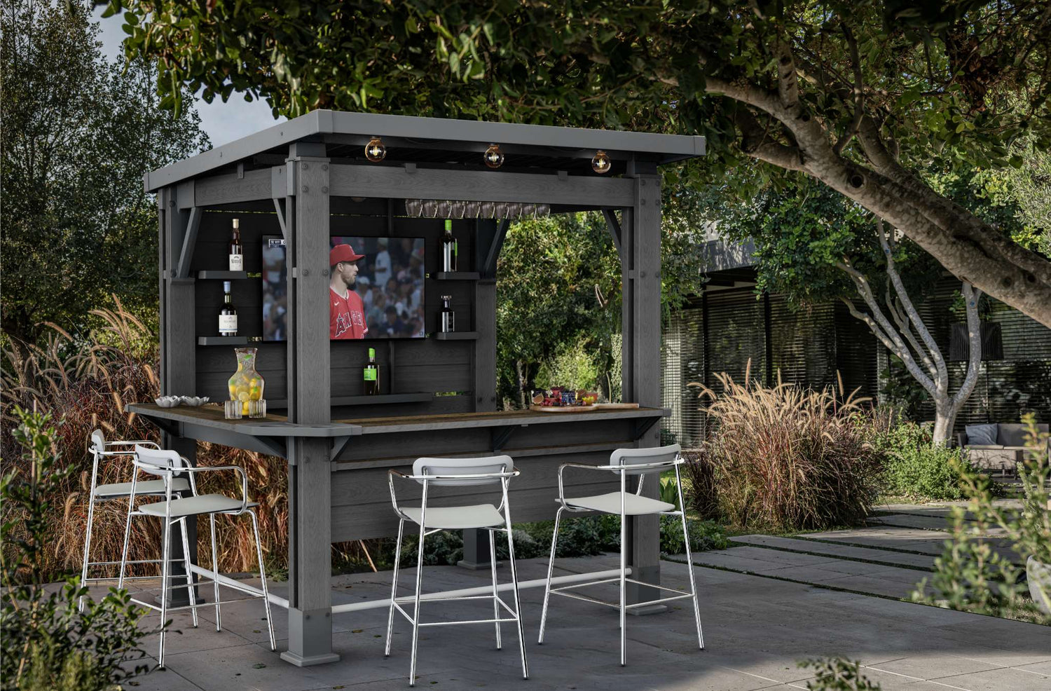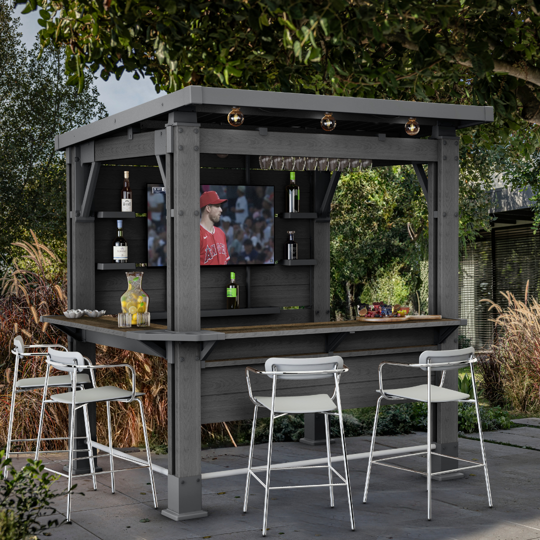 • Diseño 2 en 1: pérgola con barra integrada, ideal para terrazas, patios, quinchos y zonas de piscina