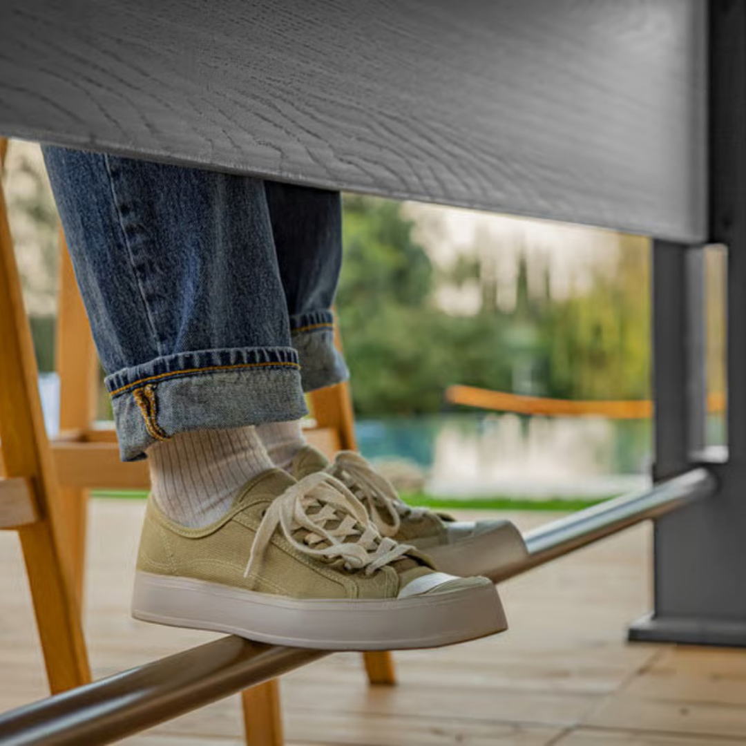 • Material principal: resina (polipropileno 100 % reciclado) con acabado tipo madera y tecnología DecoCoat